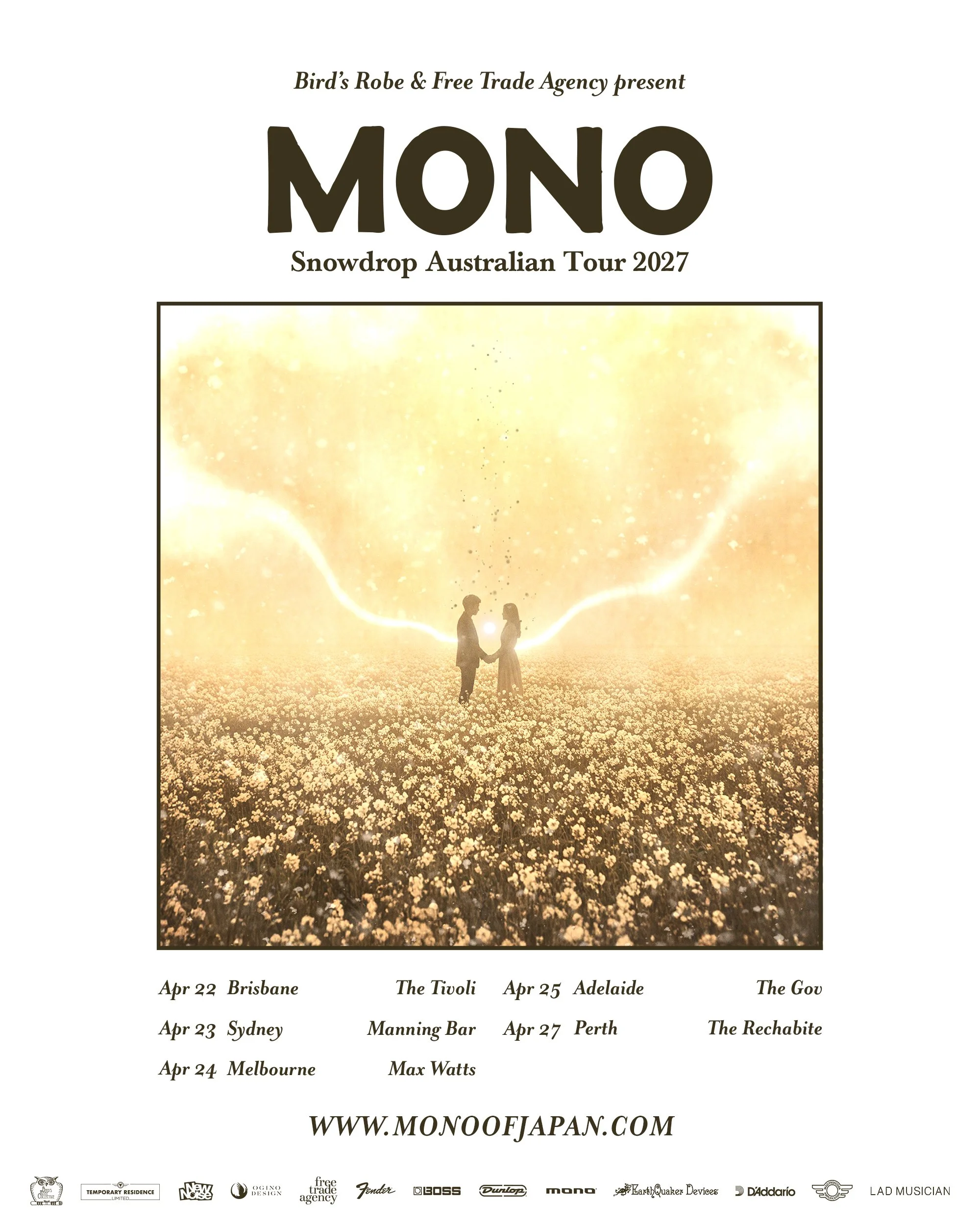 Japanese instrumental rock group MONO has announced their new album ‘Snowdrop’ will be released on 12 June 2026. It will be followed by their first Australian tour in four years, taking place in April 2027. The legendary quartet will perform in Brisbane, Sydney, Melbourne; and return to Perth and Adelaide for the first time since 2020.